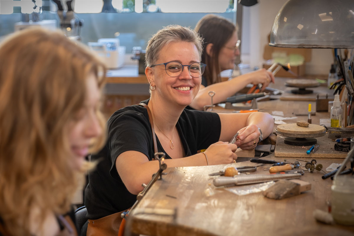 På værkstedet er hele guldsmede teamet med til at designe og smede nye smykker, hvad enten det er til Vium Collection eller unika smykker på kundernes bestilling. Vi holder meget at tænke kreativt i samspil med hinanden og profiterer af alles kvaliteter og kompetencer.